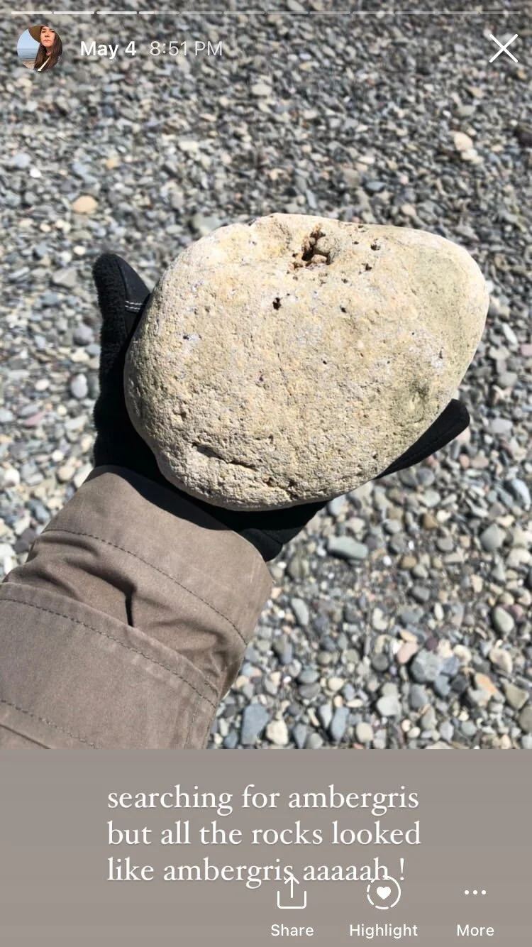 Ma première réaction fut de l’embrasser de tout mon corps, de me lover dans le creux des os érodés par la mer, de le toucher et de le sentir. Je me trouvais privilégiée d’avoir fait cette découverte. Je n’avais jamais touché à un os de baleine. Les quelques spécimens que j’avais vus dans le passé étaient dans des musées d’histoire naturelle où, bien entendu, il est interdit de toucher.